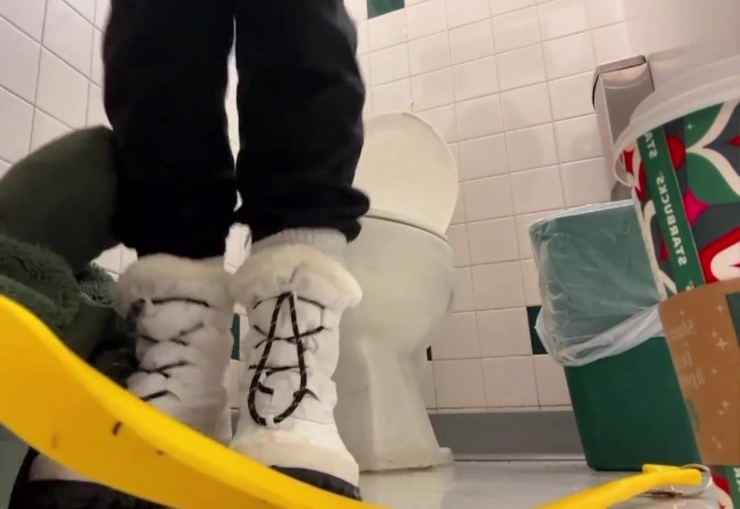 Girl open wide legs and shitting on the toilet floor