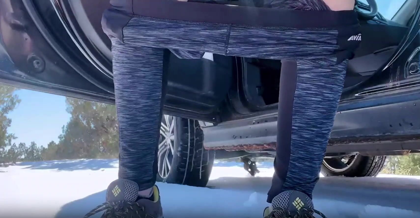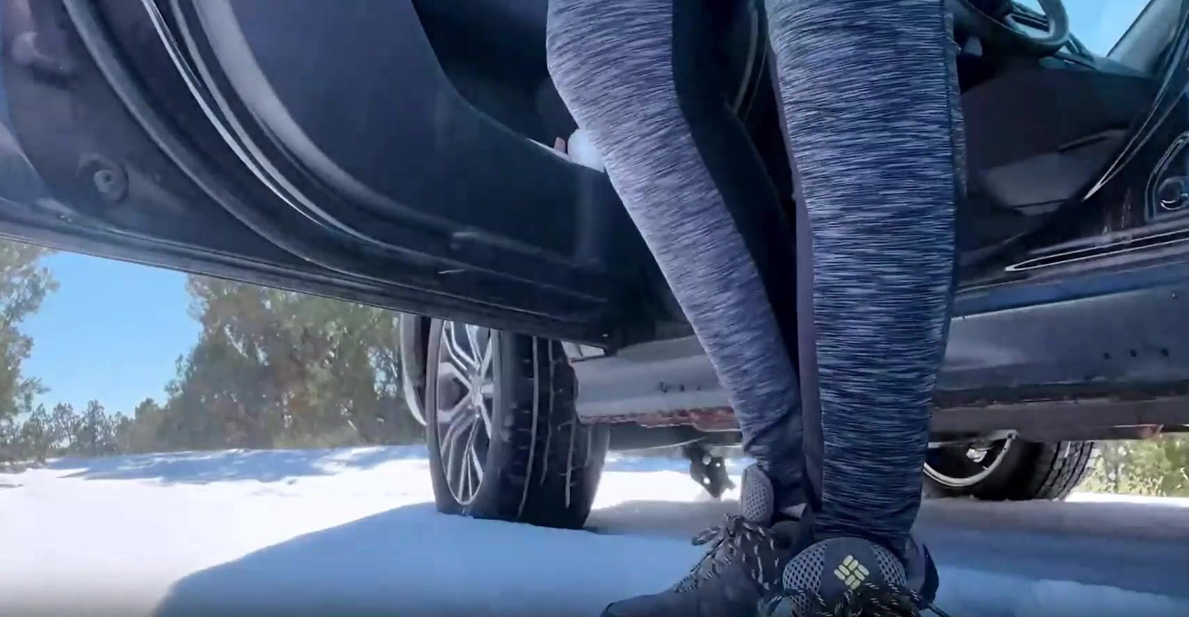 Redhead Farts, Poops and Pees Next to Car
