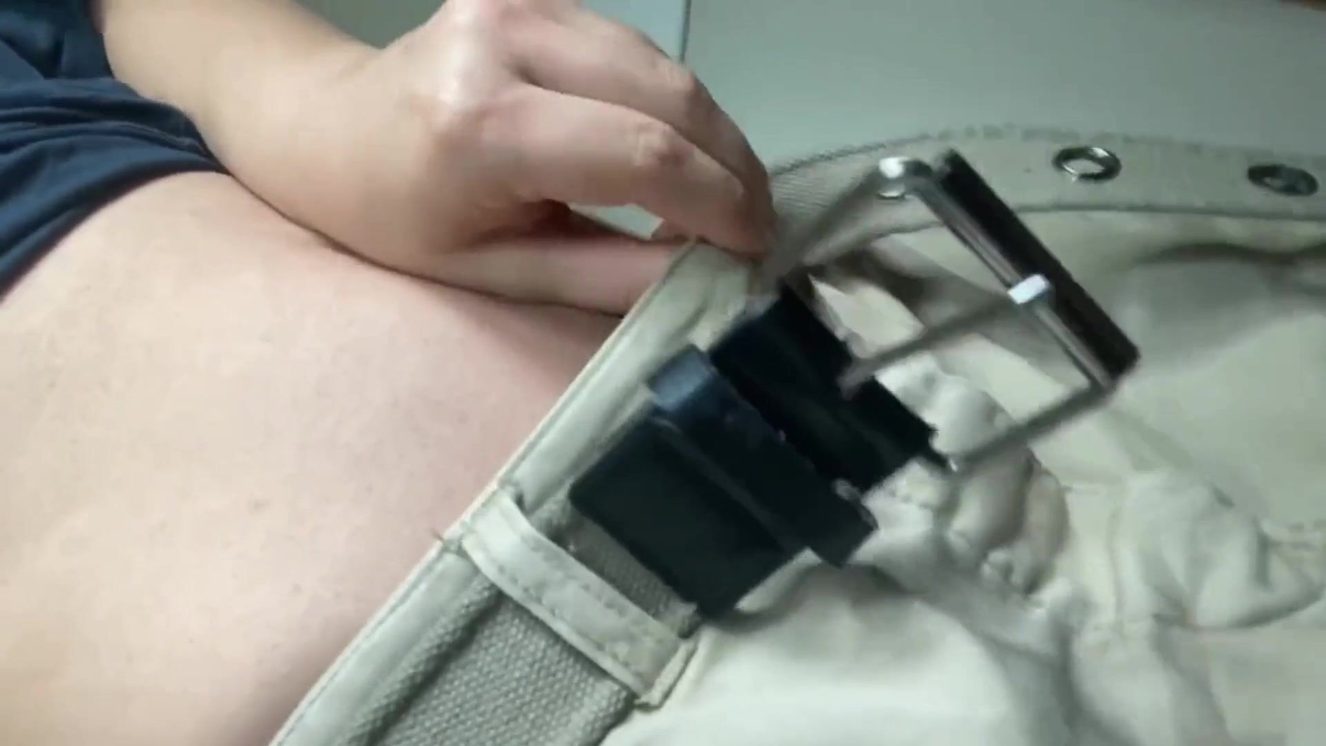 Girl struggles to unbuckle belt desperate to shit