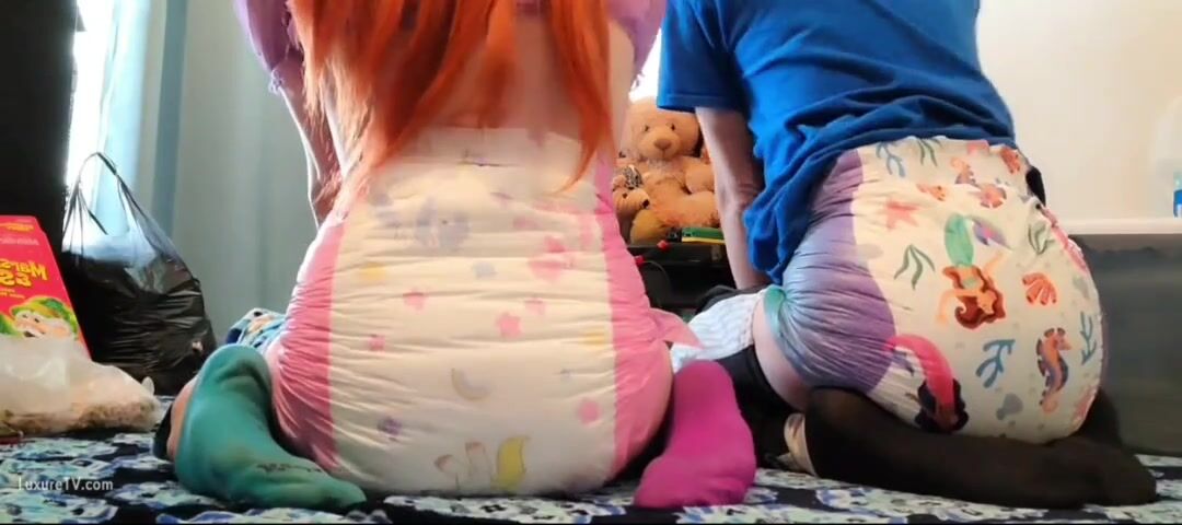 Gamer girl and boy shits in their diapers