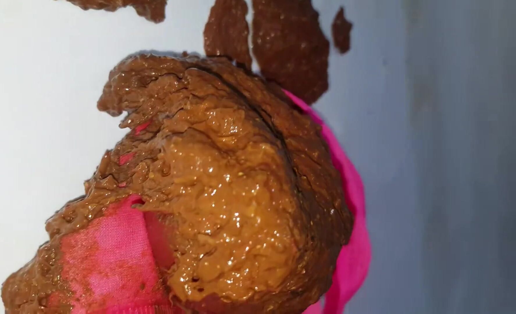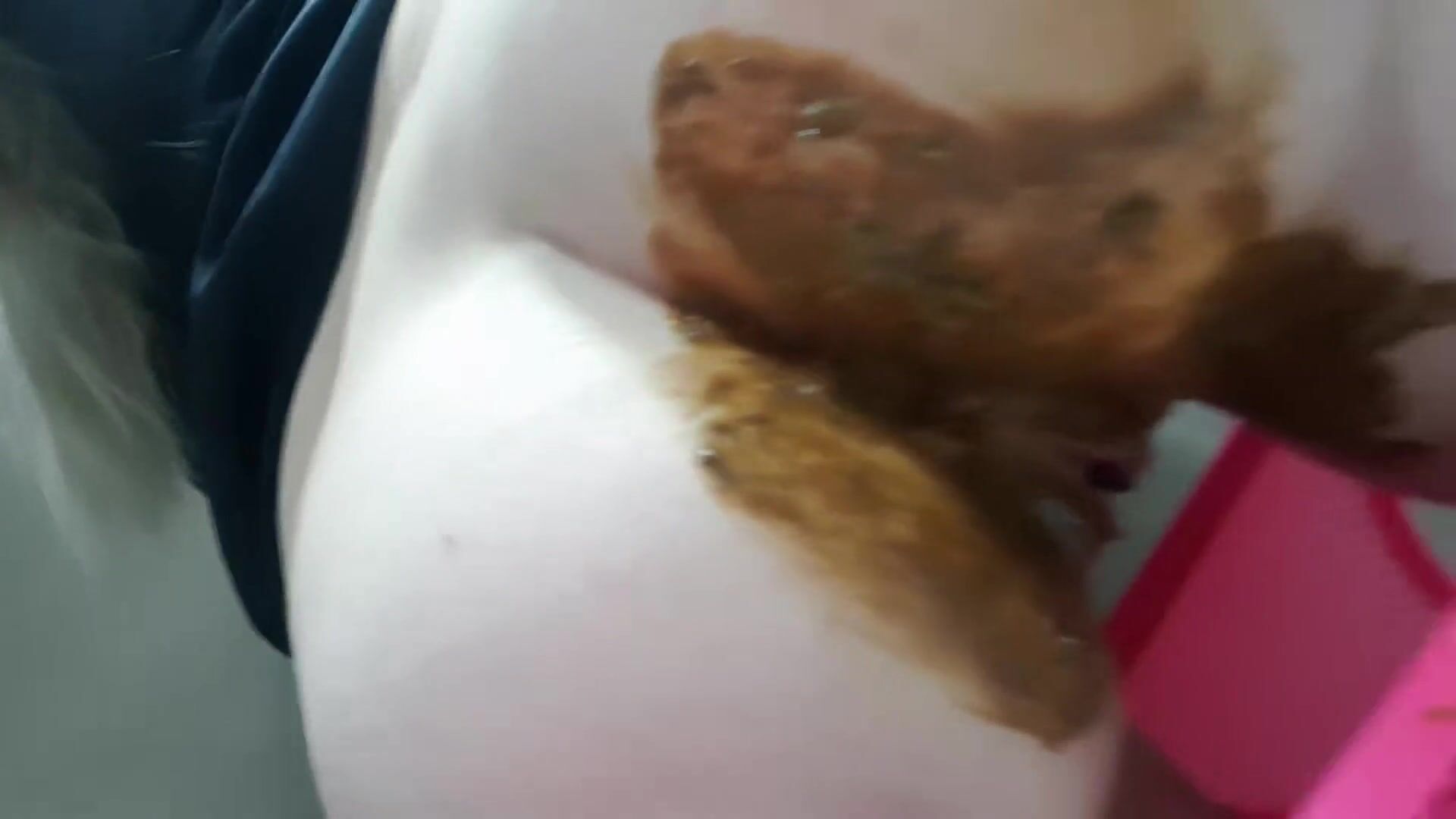 Pink panties overflowing with soft poop