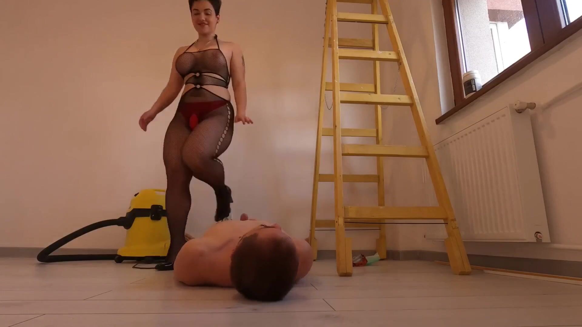 Mistress pantyhose tease slave and shitting on his mout
