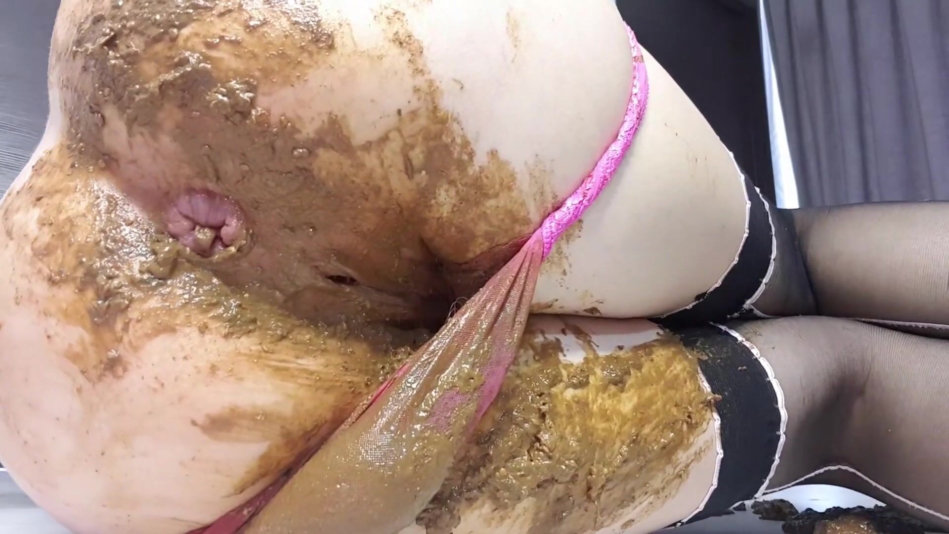 Huge overflowing poop in pink panties