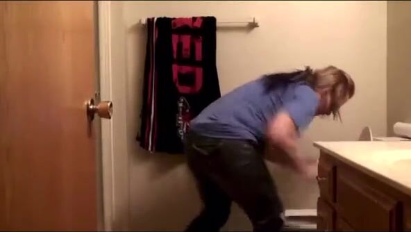 Hot thin babe shits on her floor