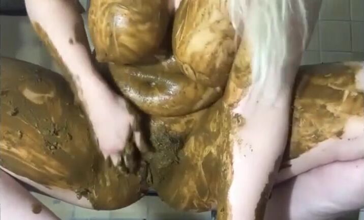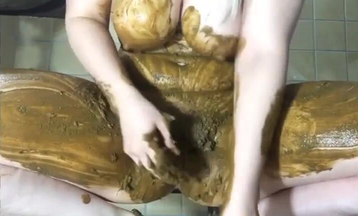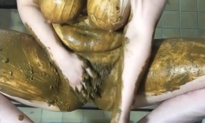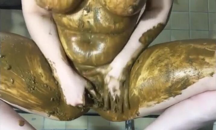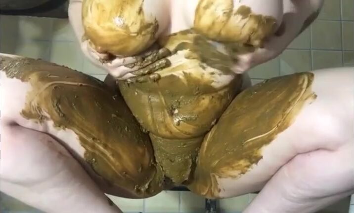 Smearing shit on legs and pussy