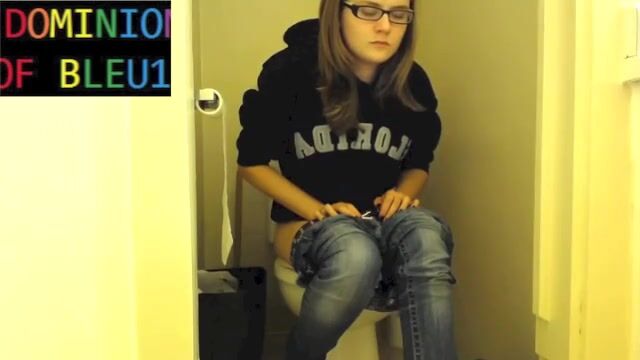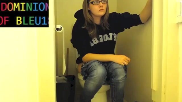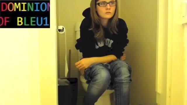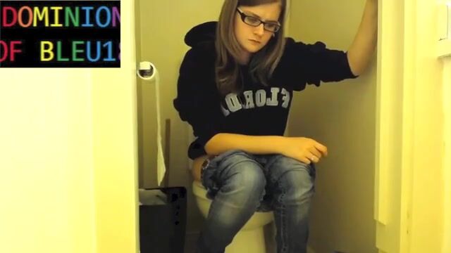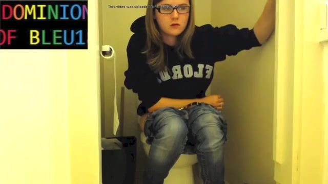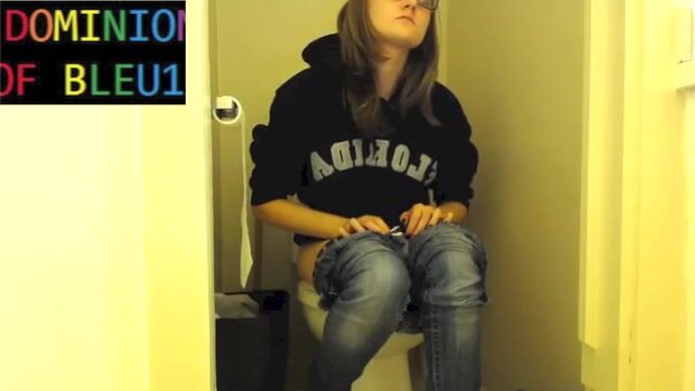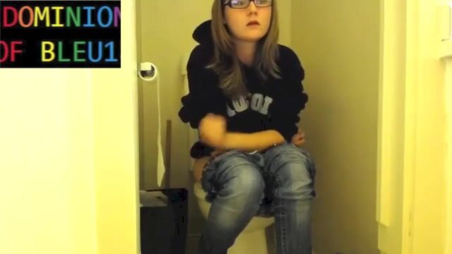 Sexy girl pushing on toilet