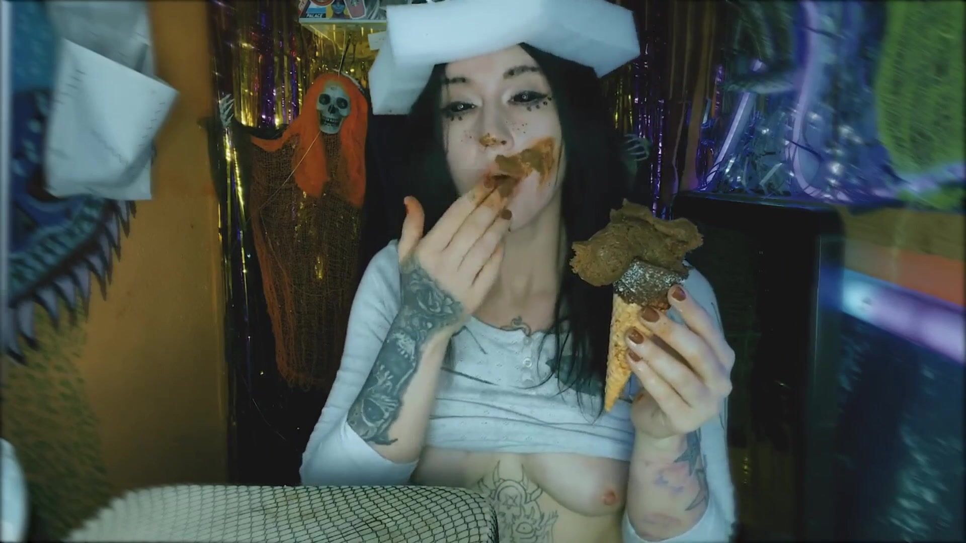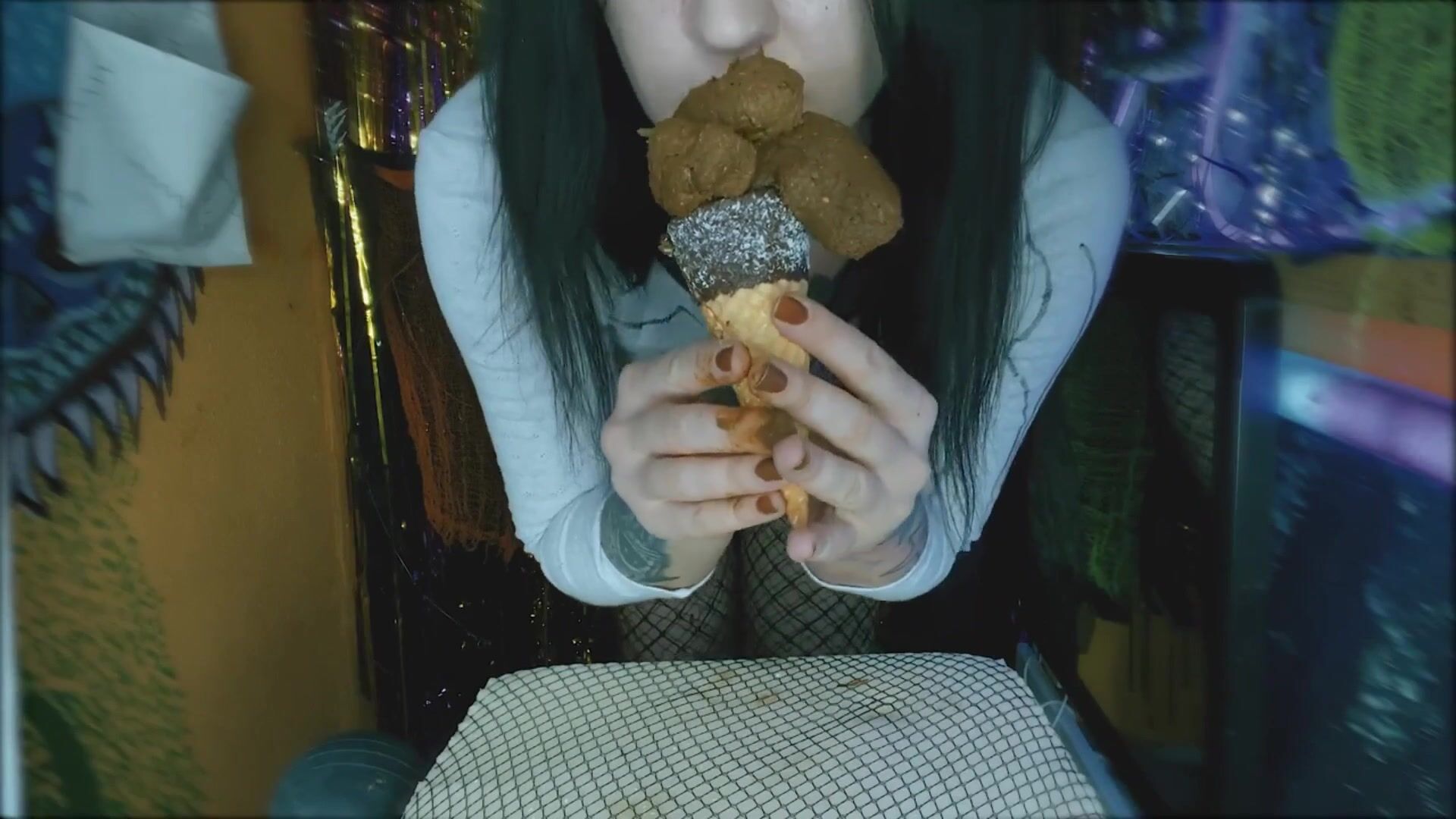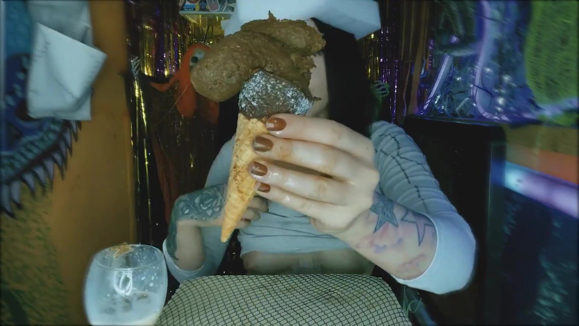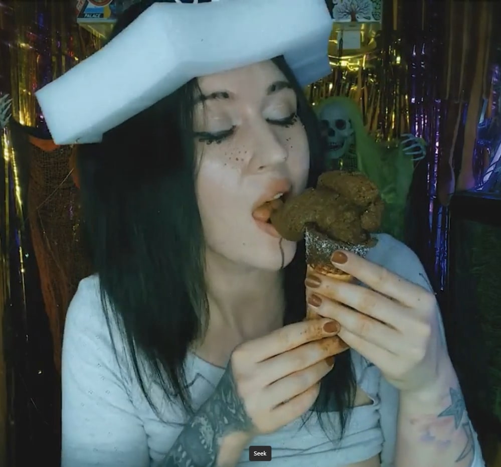 Perverted girl makes poop icecream and eats it