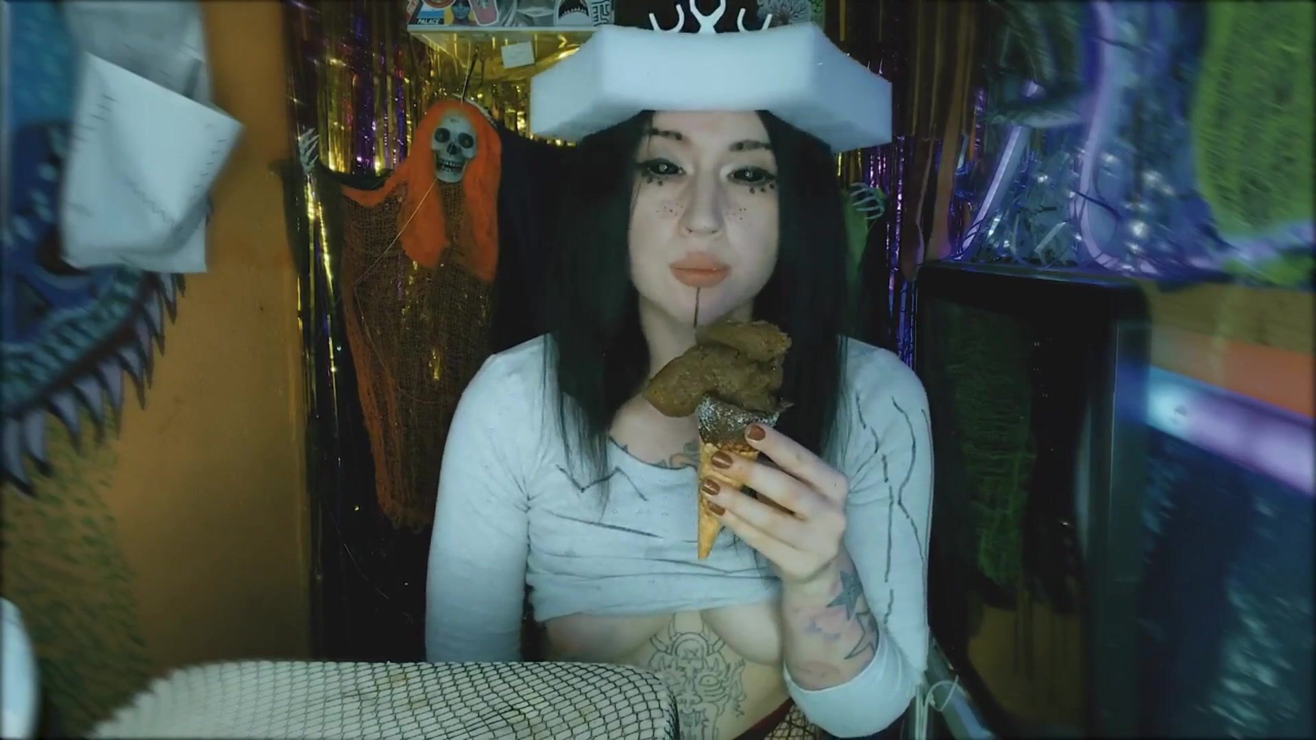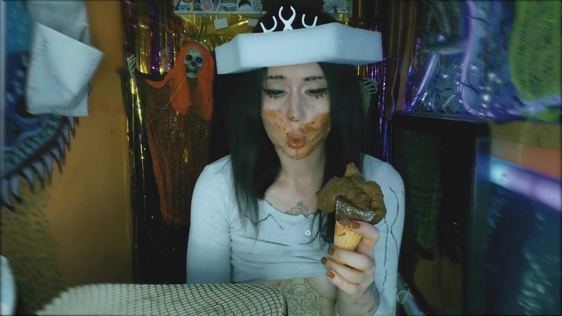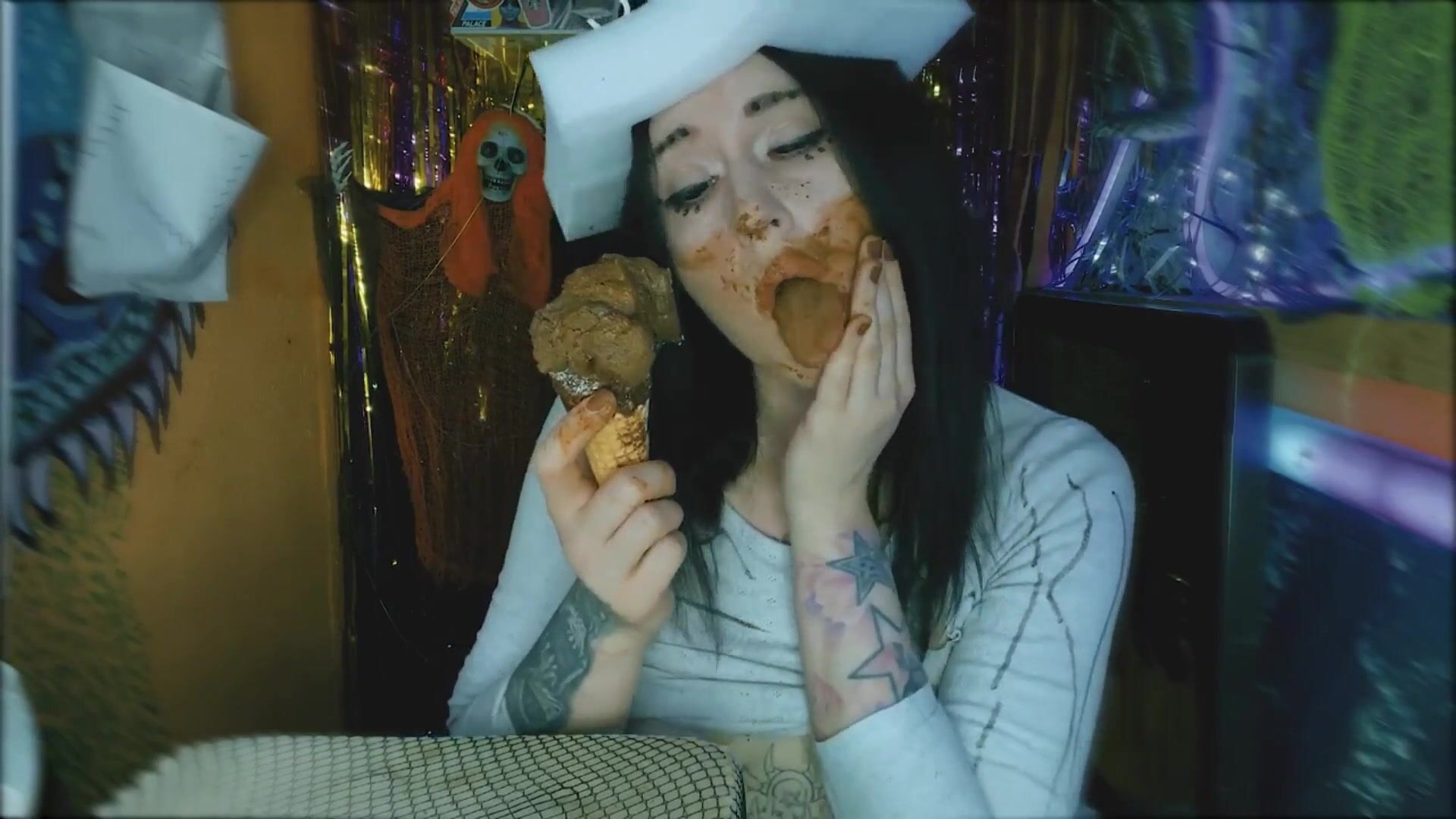 Perverted girl makes poop icecream and eats it