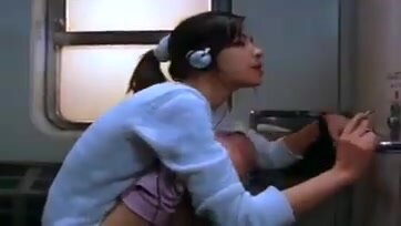 Girl pooping in train