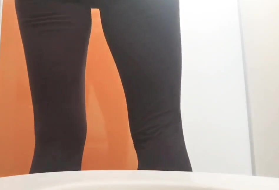 Girl open wide legs and shitting on the toilet floor