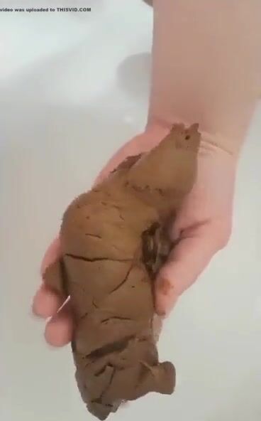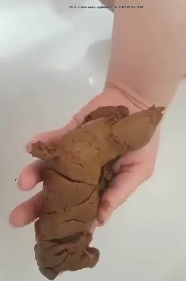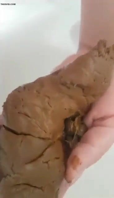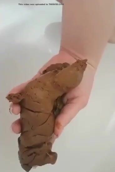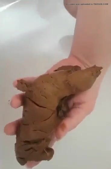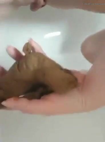 Woman poops in the palm of her hand