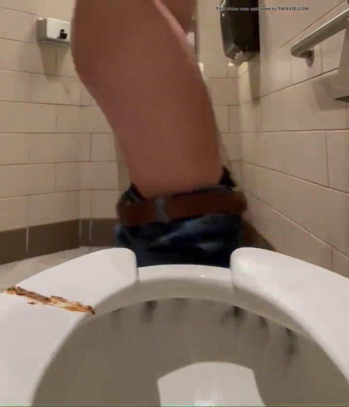 Girl open wide legs and shitting on the toilet floor