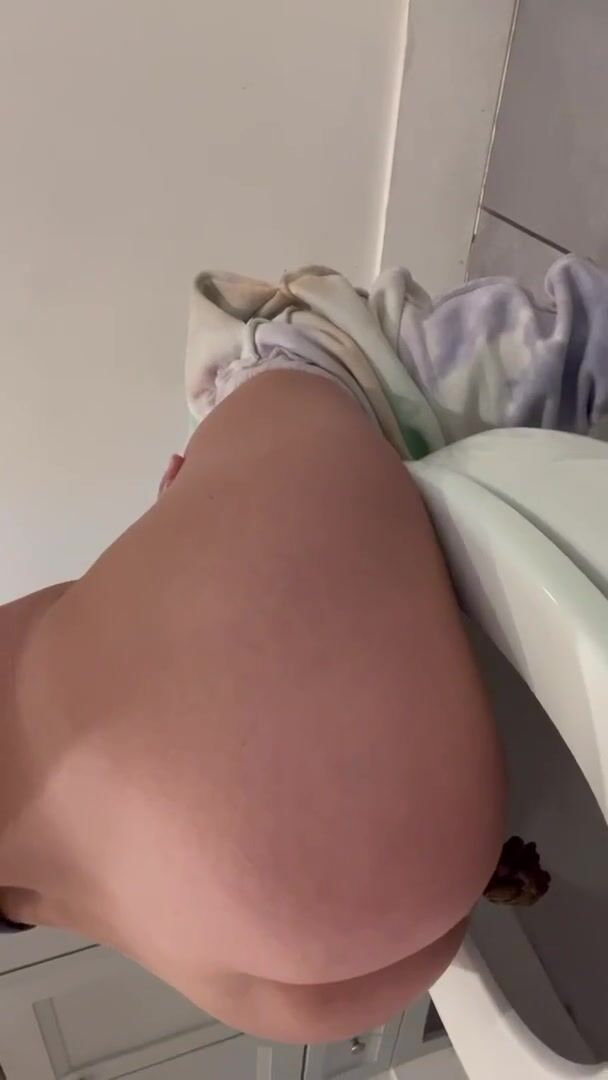 Woman on her side births huge turd.