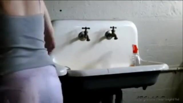Diaper girl can't hol her poop while washing the dishes