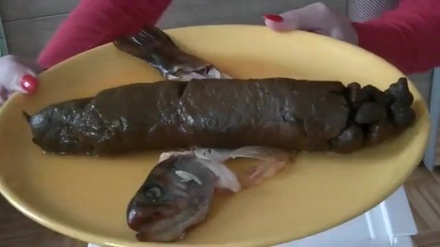 German lady produces 27 cm poo.. auf eine Fischgräte!