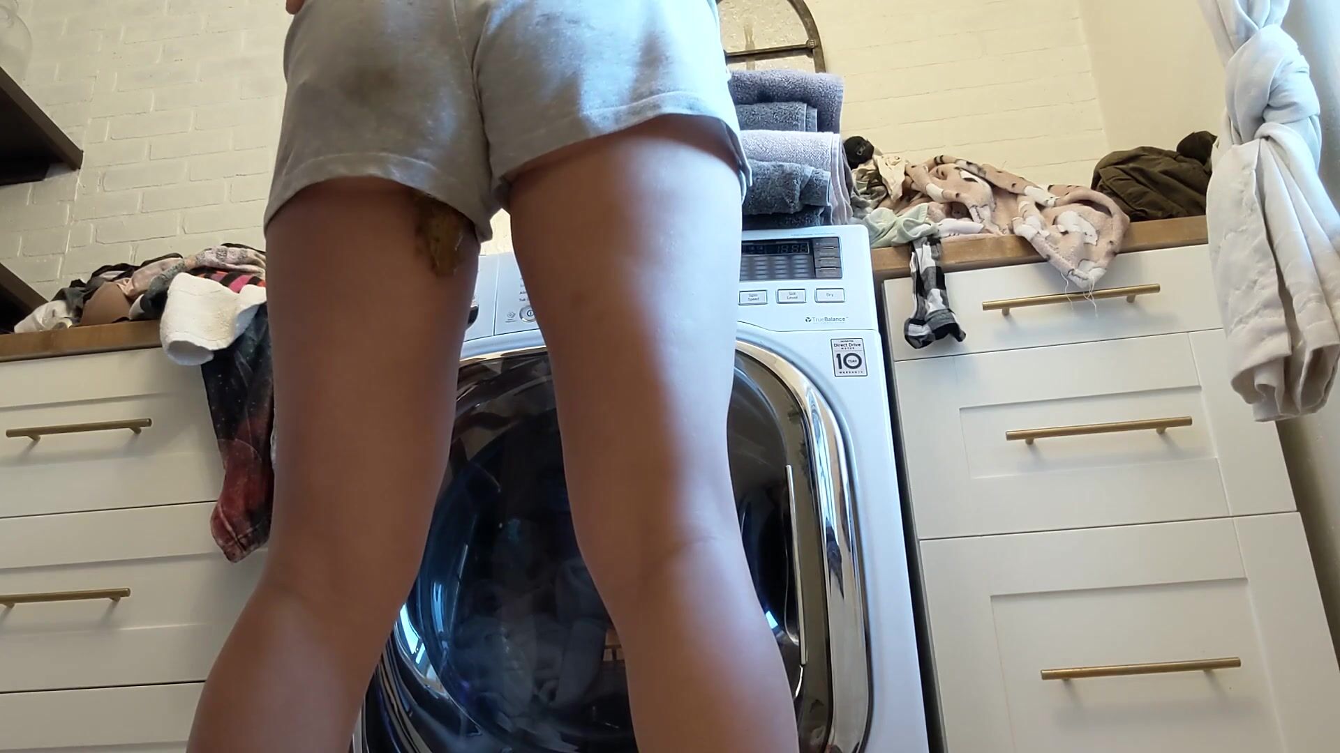 Huge wet bubbly shit in tight booty shorts