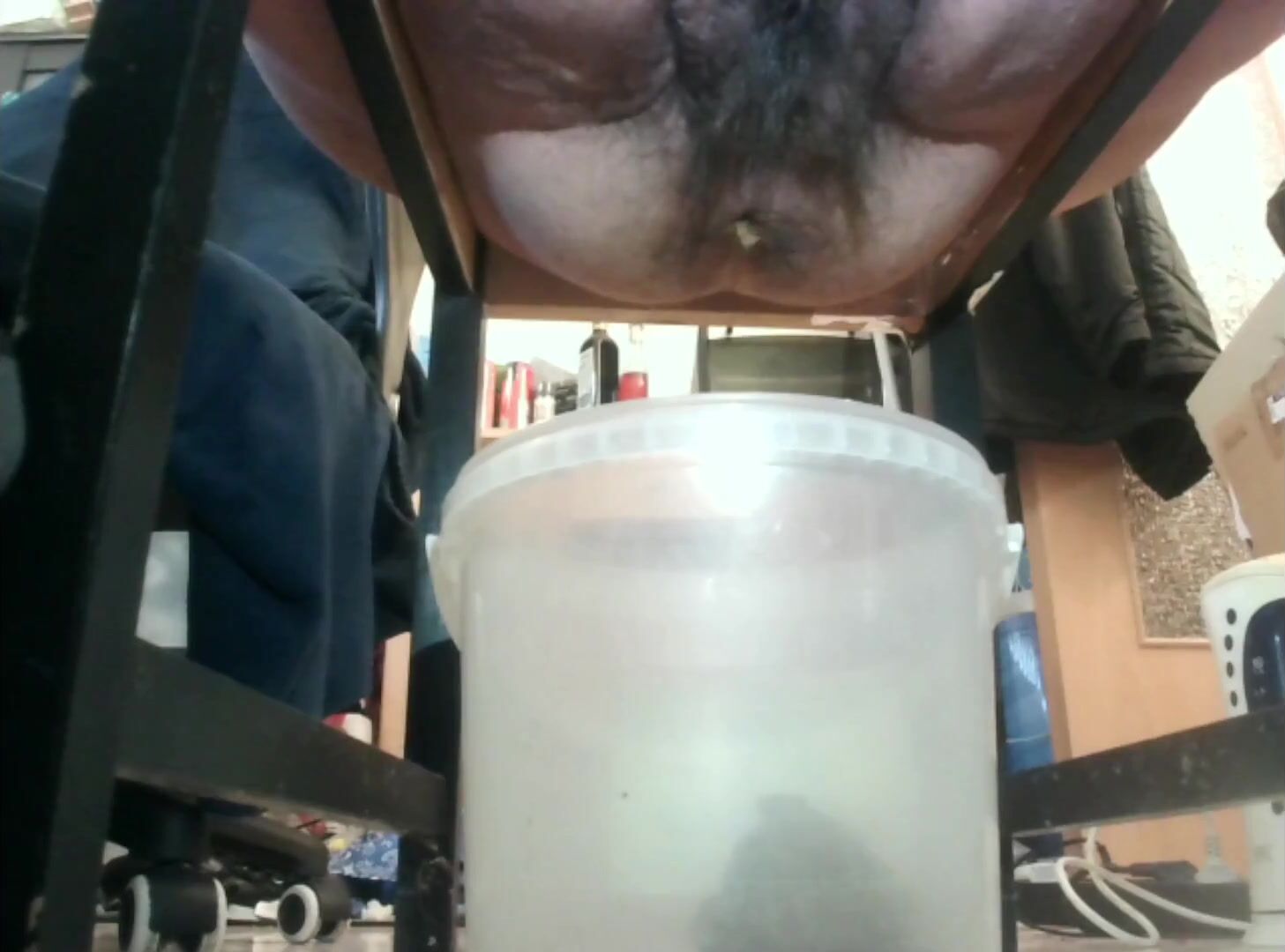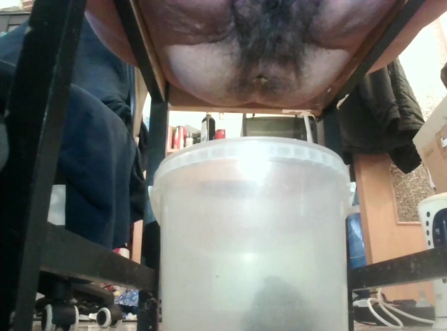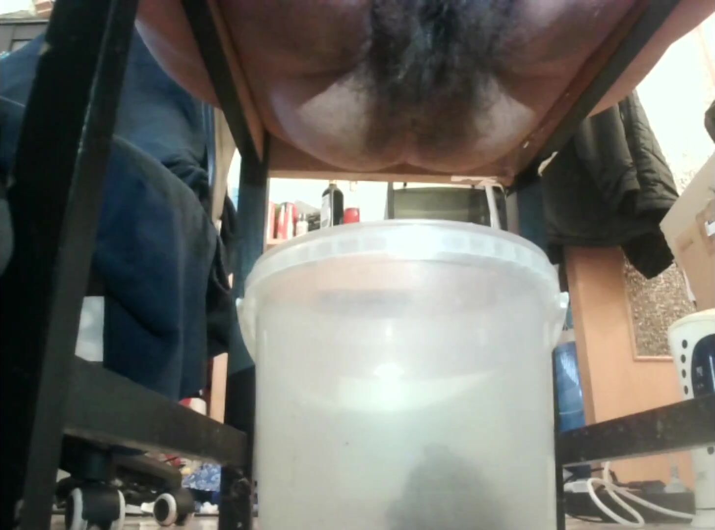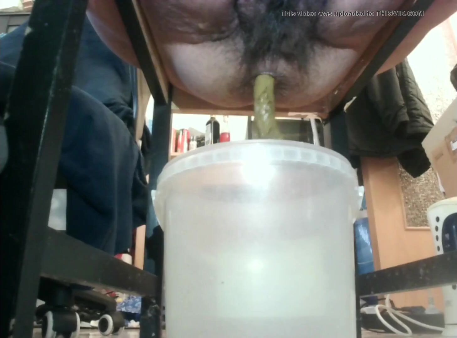 asian shitting in a jar