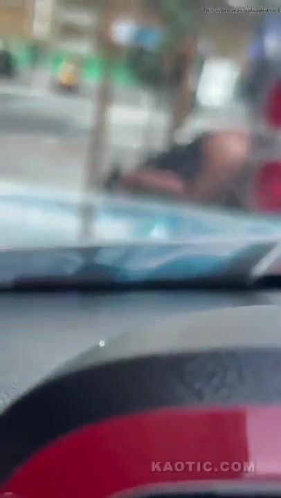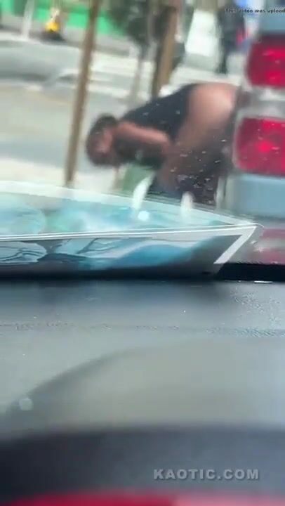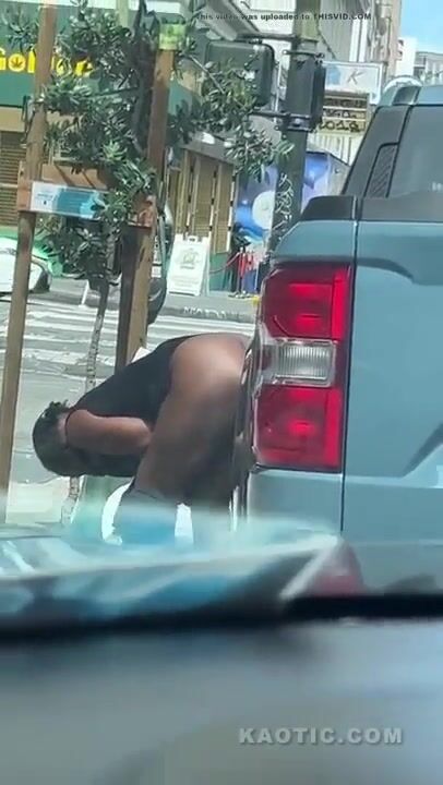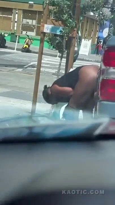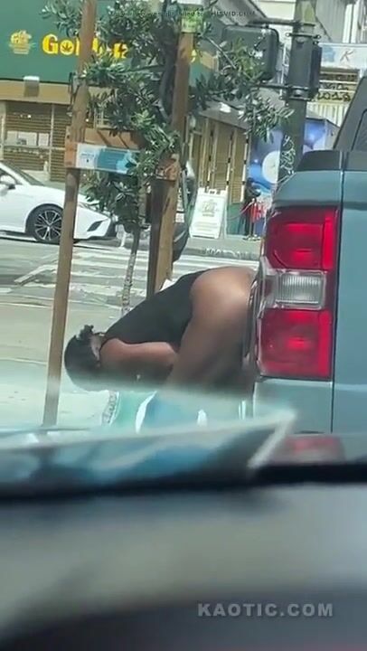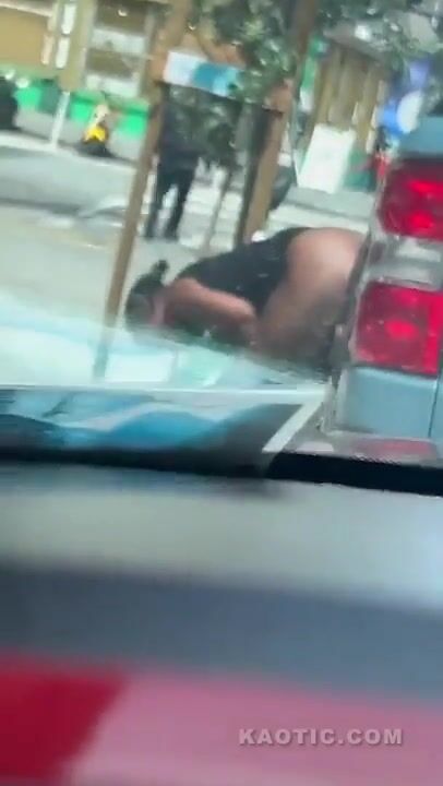 Woman shits on the street.