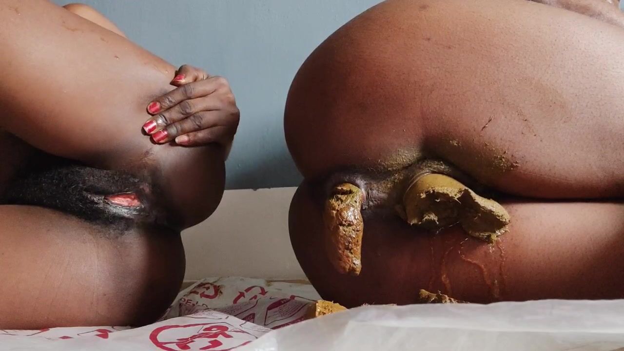 Prettyebonies very long turd and pussy stuffing