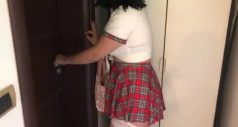gorgeous girl has shart accident at door
