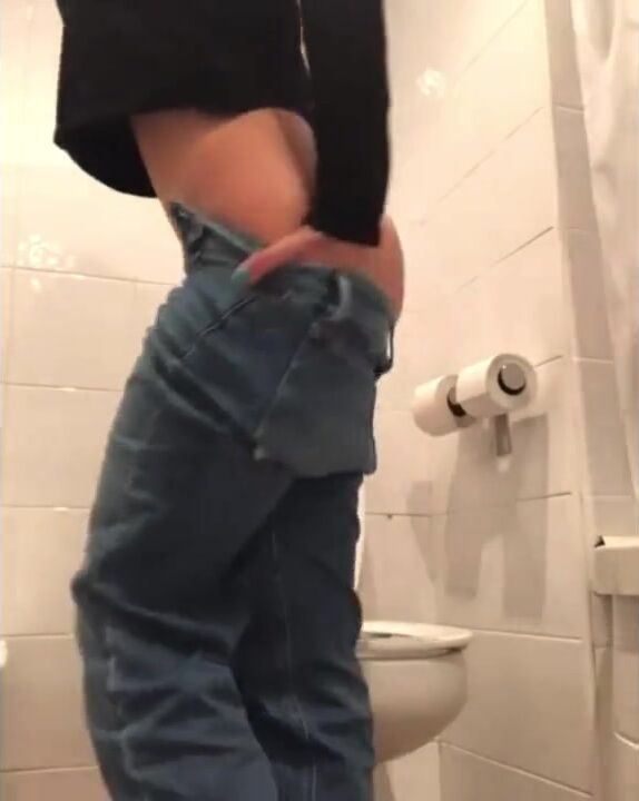 Girl open wide legs and shitting on the toilet floor