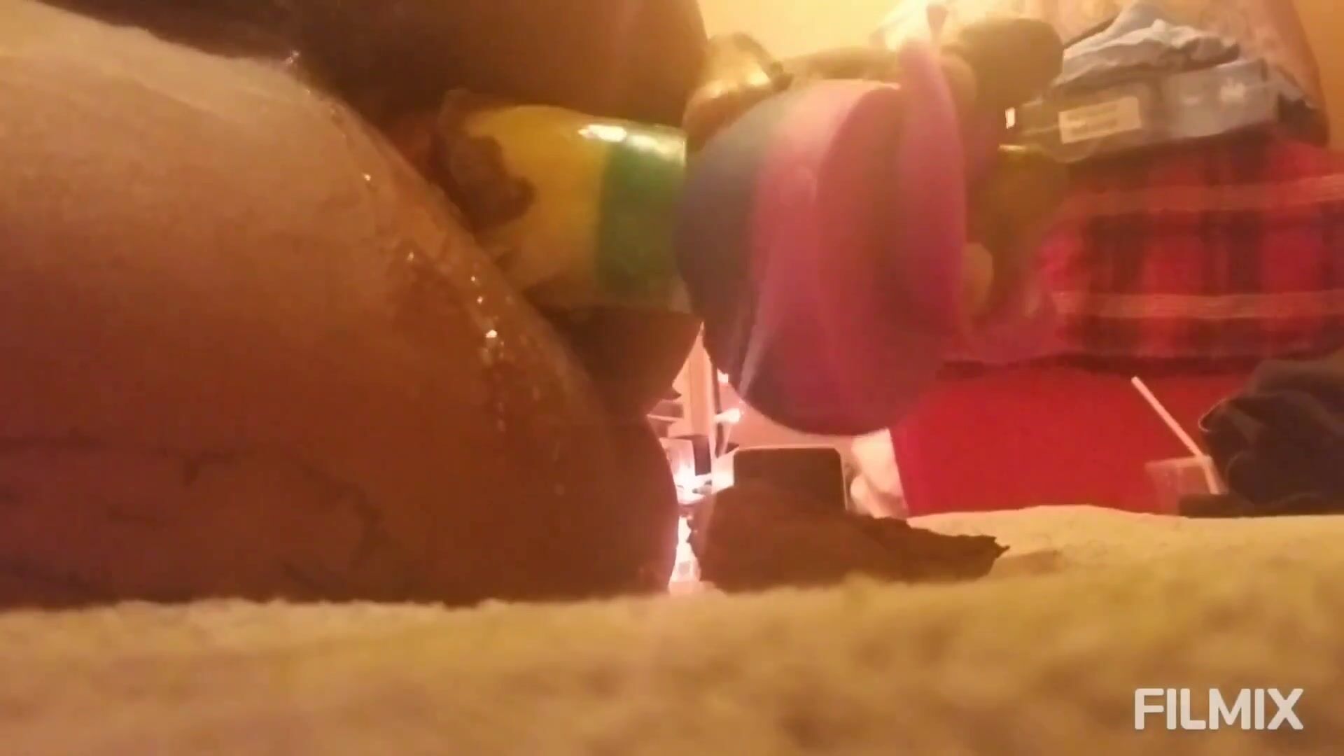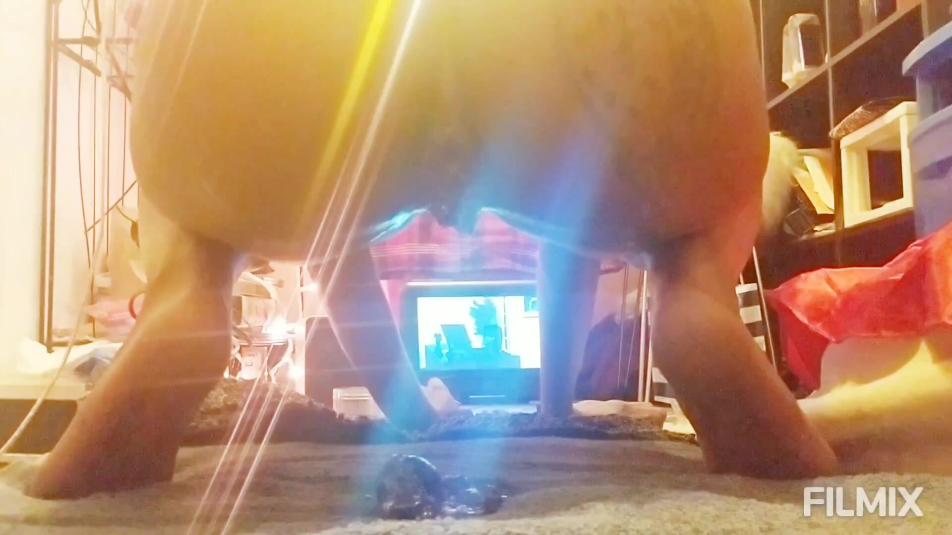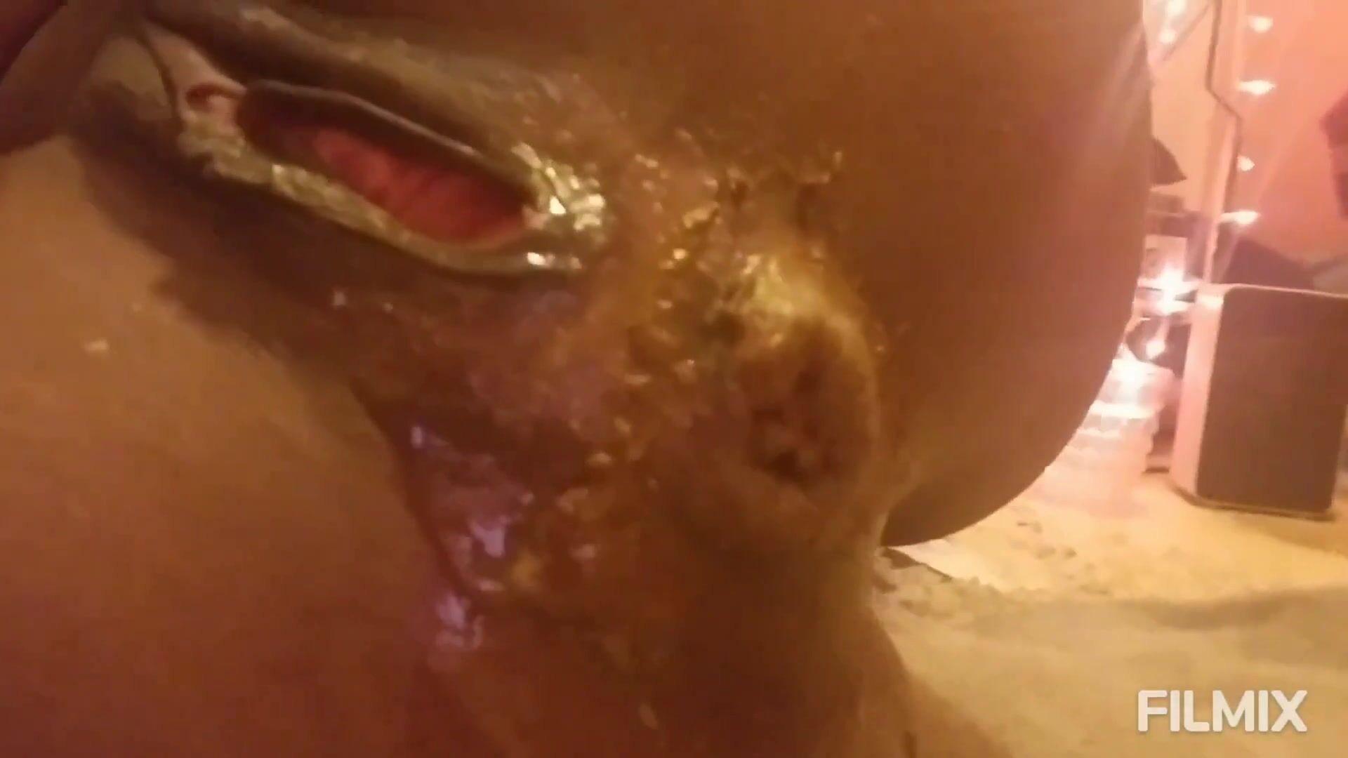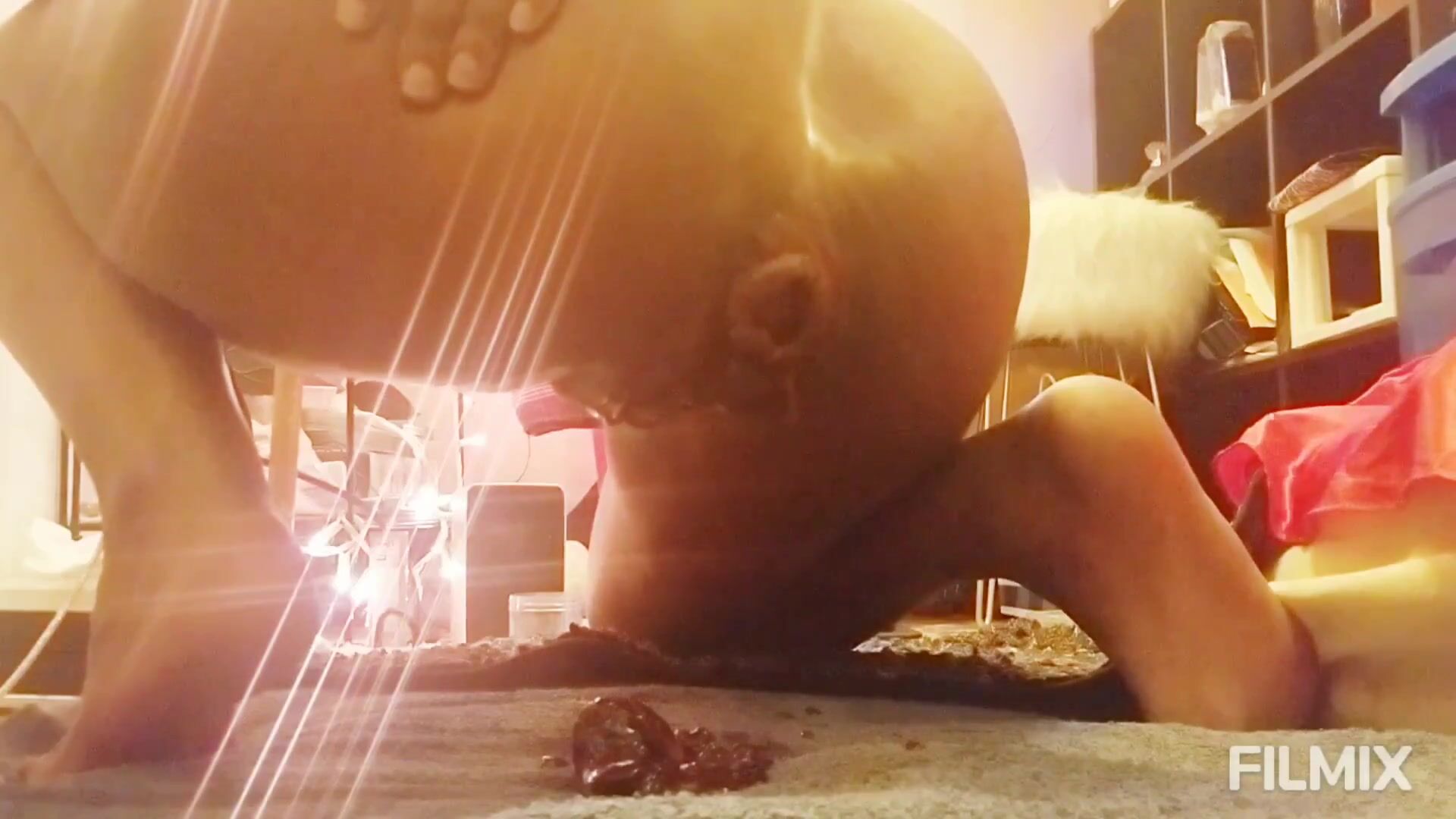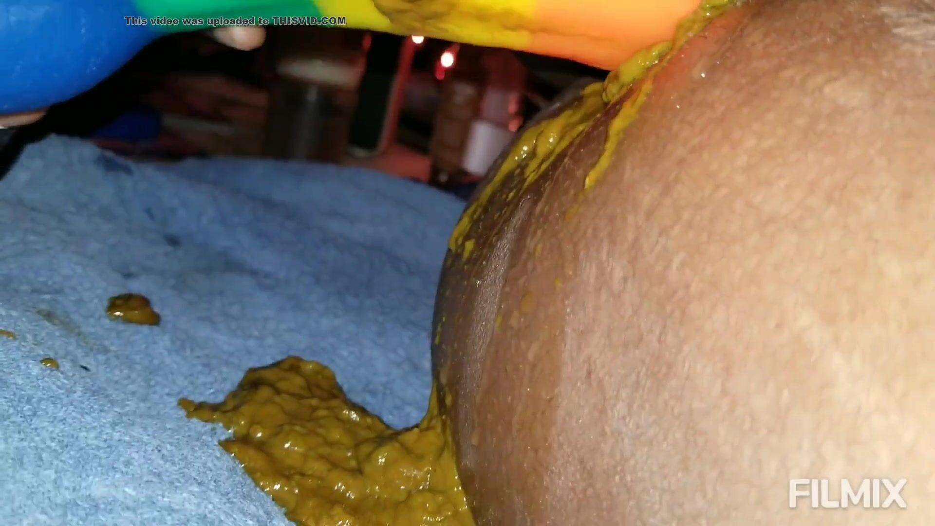 Mature mom riding dildo shitting and smearing