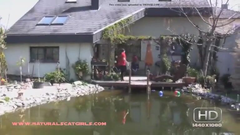 Woman pooping on her patio steps..