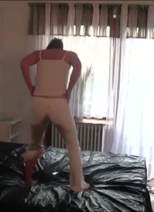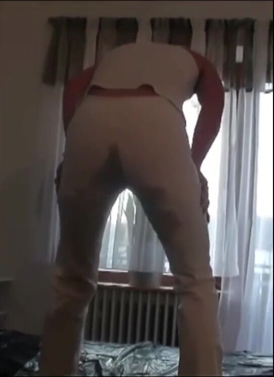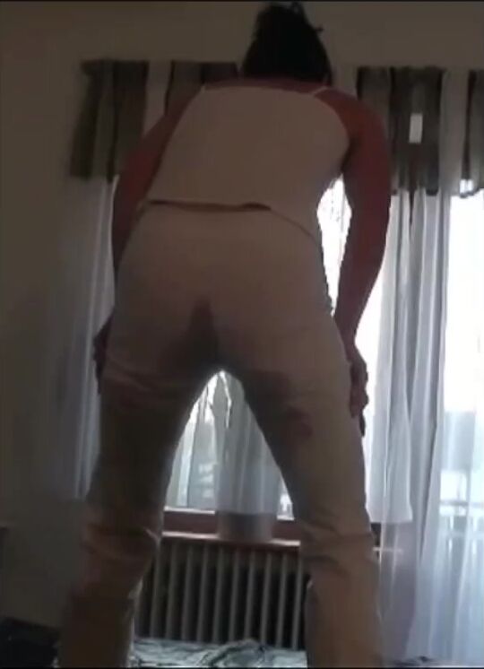 Girl piss and shit in white pant