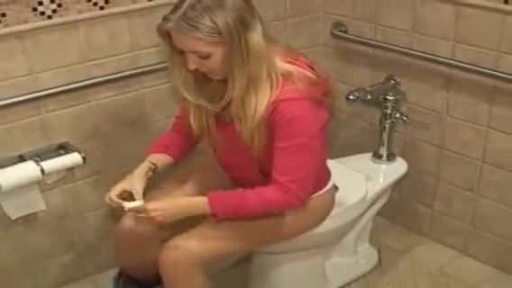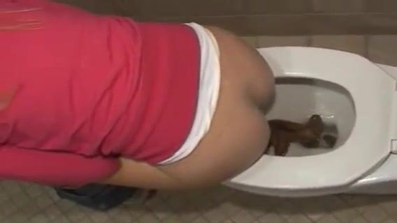 Girl pooping on public toilet