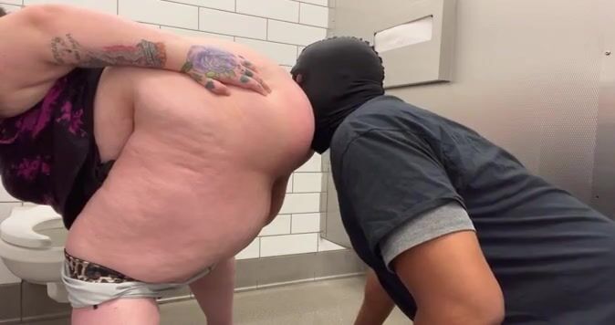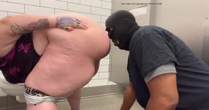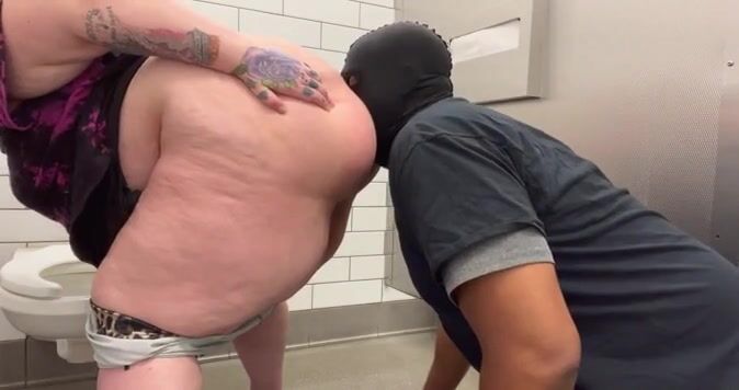 Goddess gets shitty ass cleaned in public bathroom