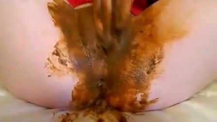 Amateur girl masturbating with fresh shit