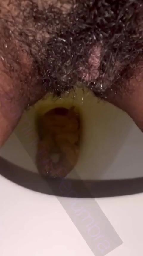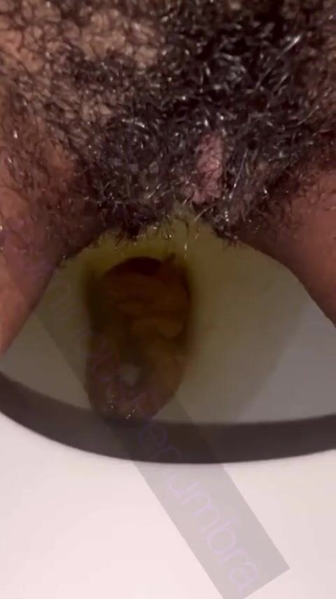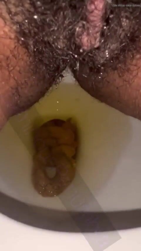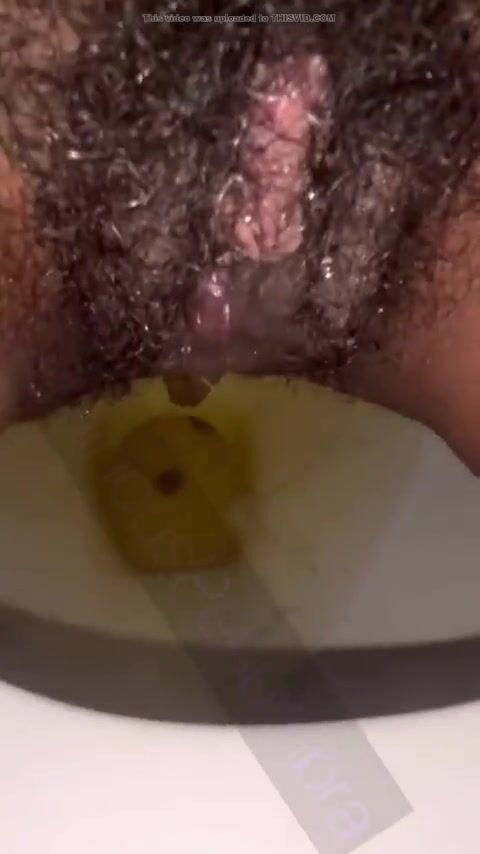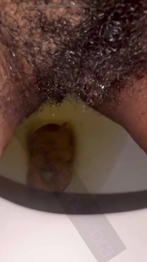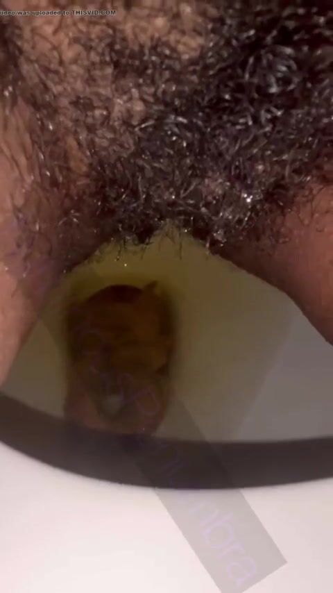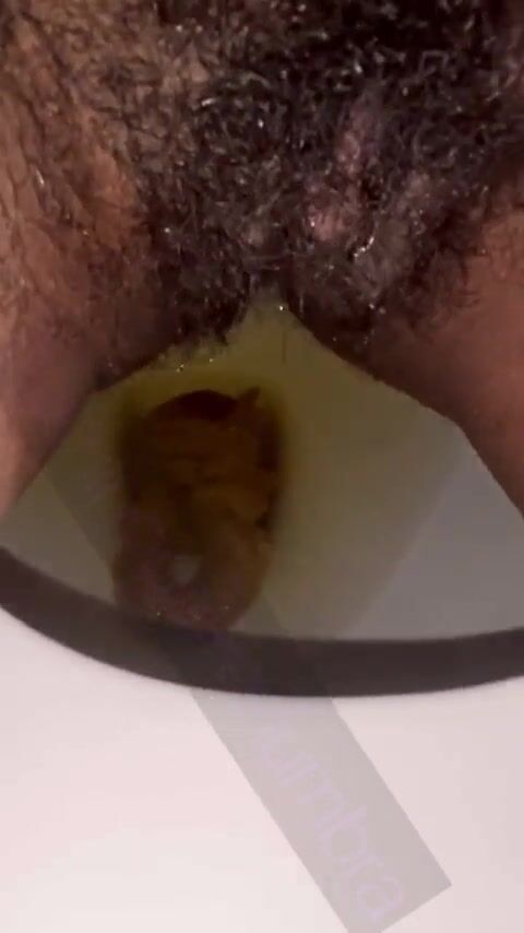 Hairy pussy ebony piss and shit on toilet