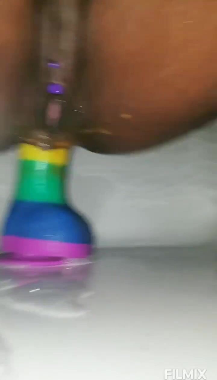 Mature mom riding dildo shitting and smearing