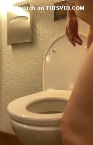Girl open wide legs and shitting on the toilet floor