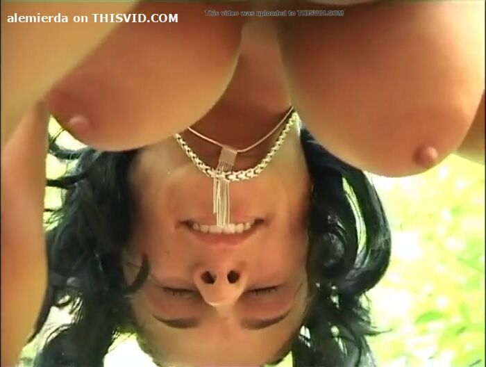 Sweet brunette takes a shit at the woods