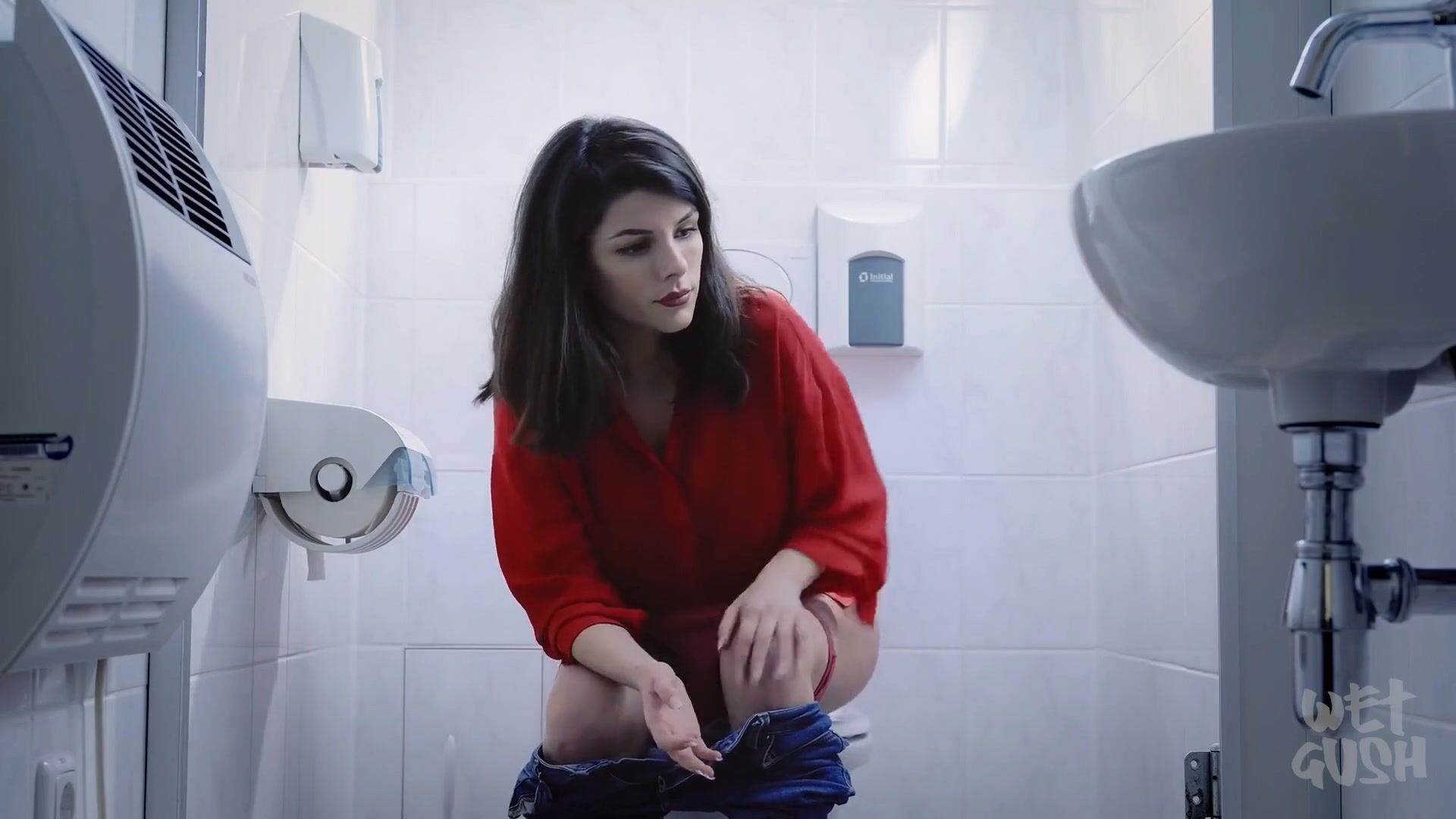 Woman pooping in Toilet 202