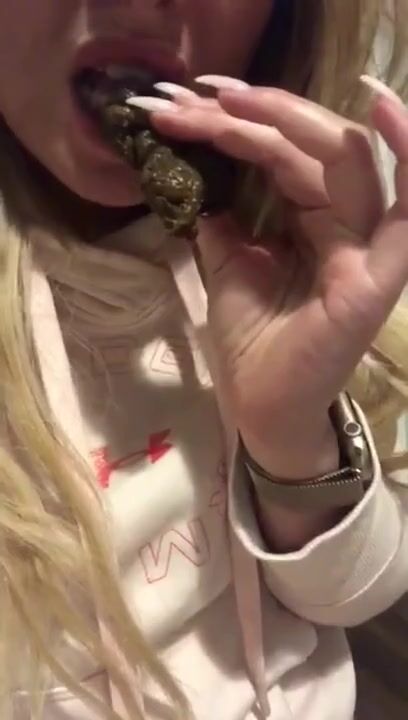 Dirty blonde slut tastes her shit