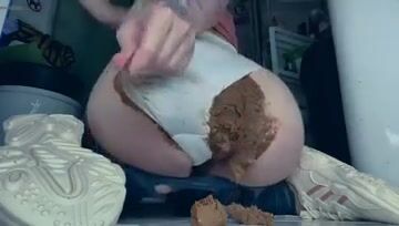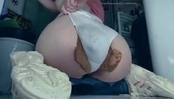 Fat ass girl does a big pantypoop and smear