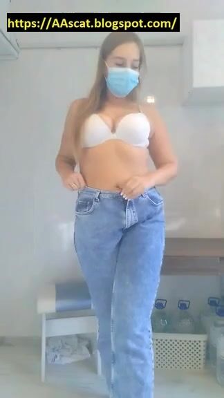 Cute Girl in Mask Strips and Shits