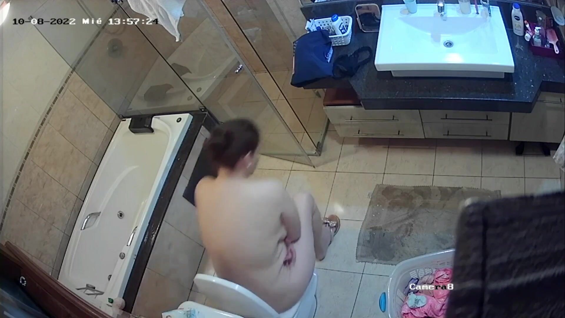 Woman pooping in home toilet 5