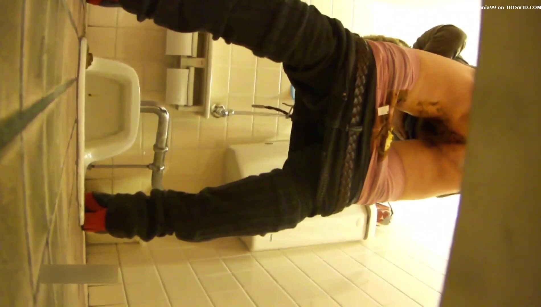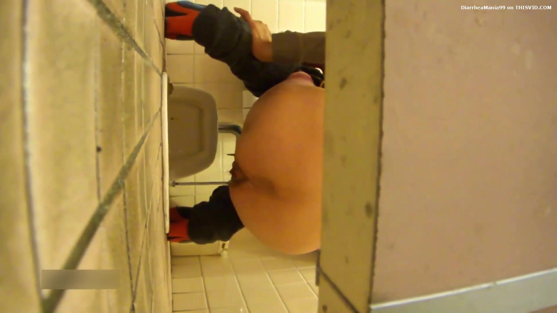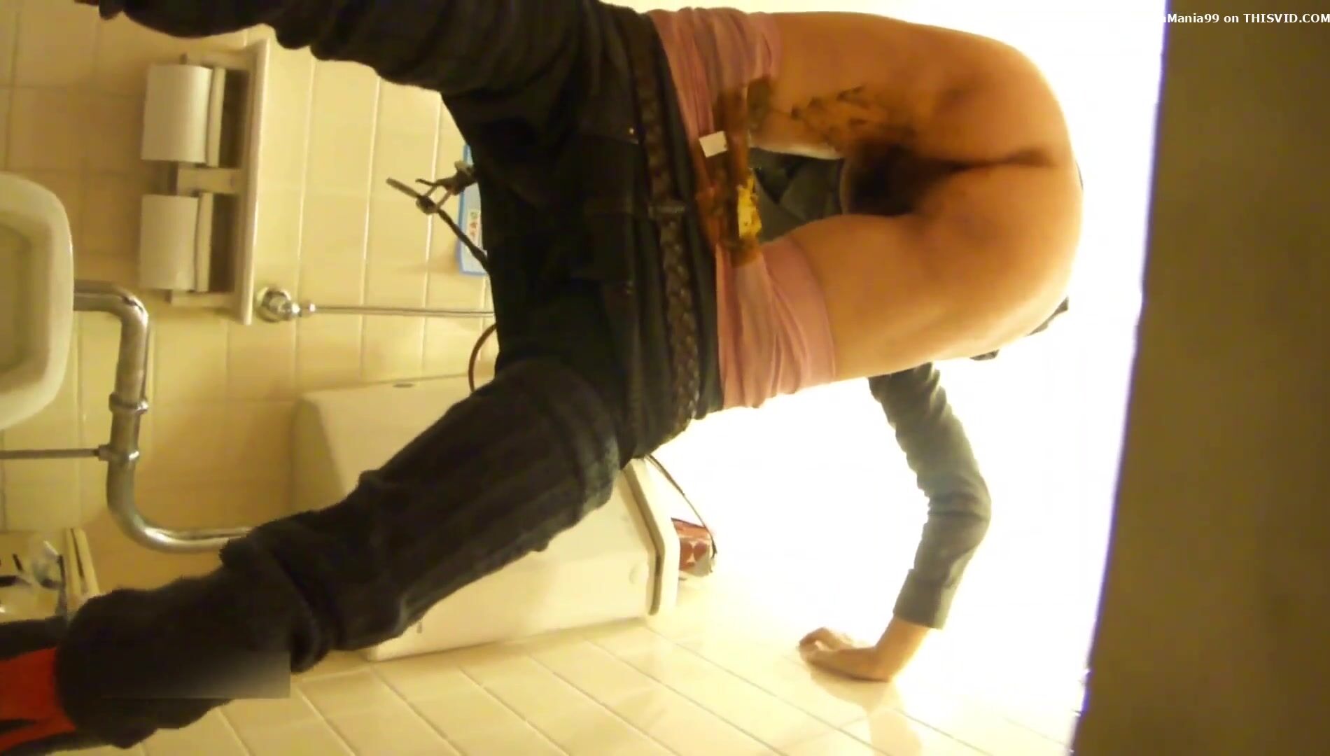 Candid filming of real toilet diarrhea and pulling pant