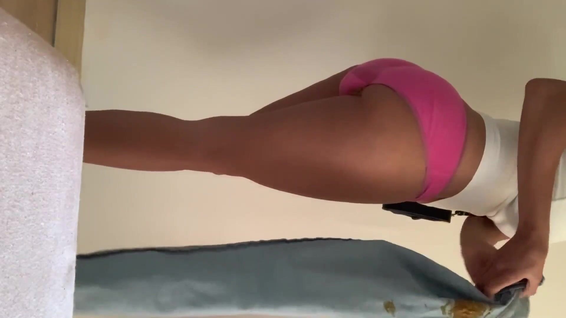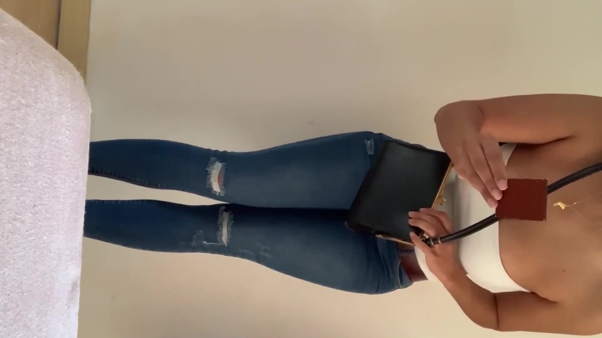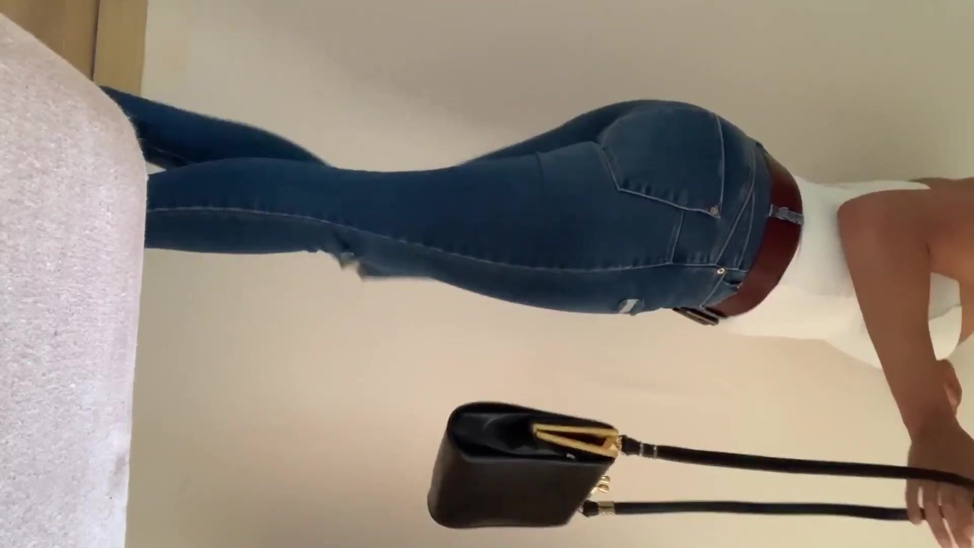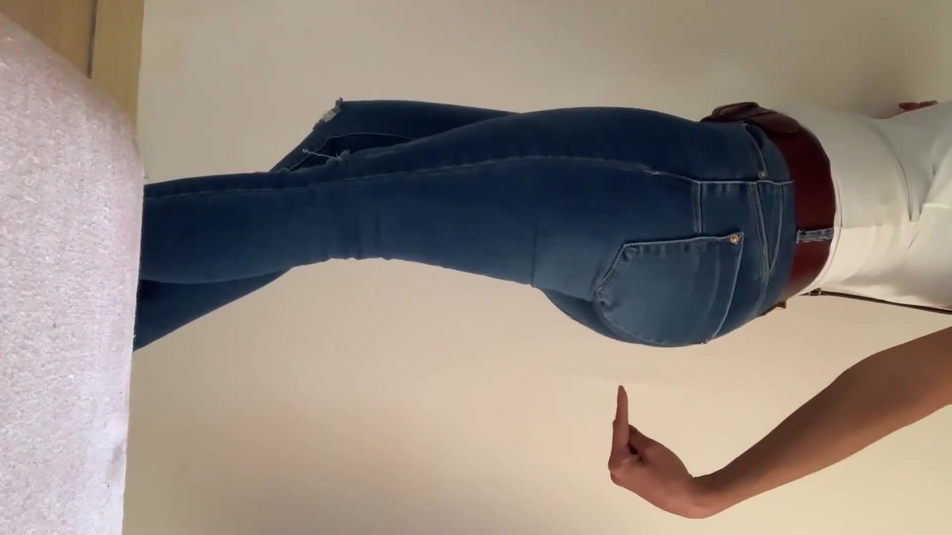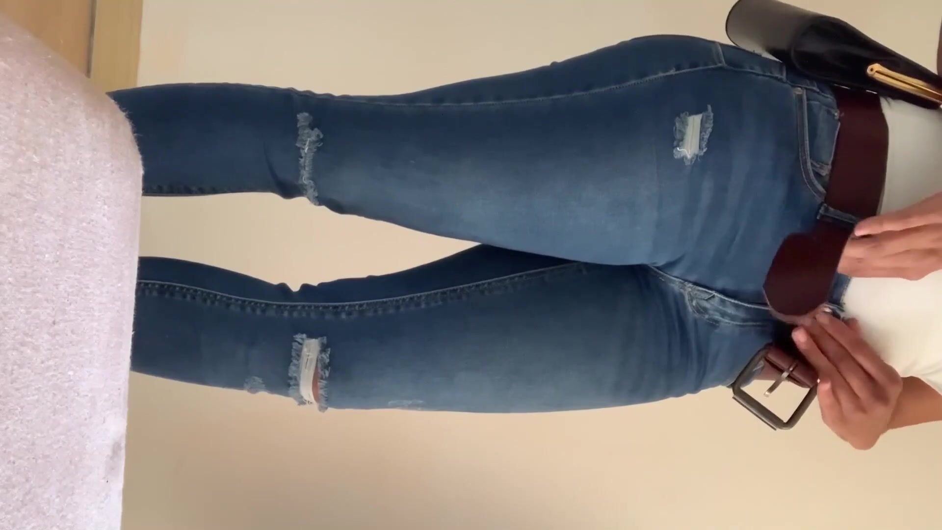 Sexy Woman fills her jeans in the bathroom