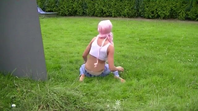 18 year old girl with pink hair pooping in panties