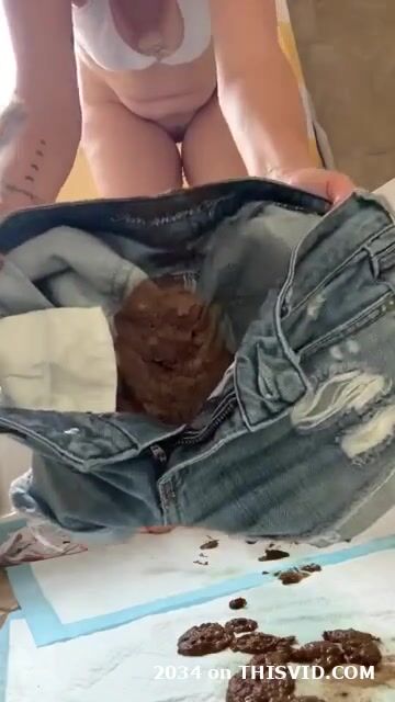 Shitting in her jean shorts
