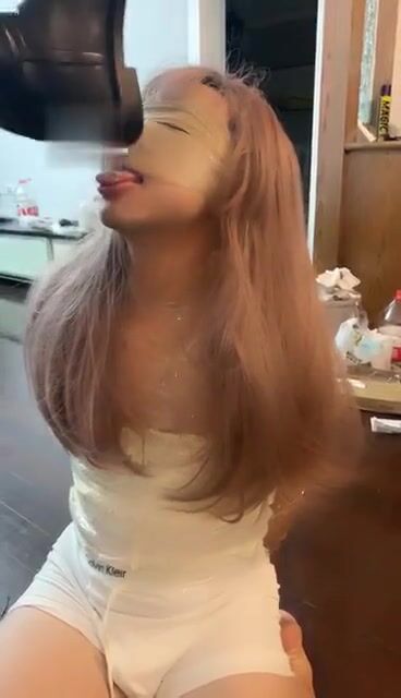 Short: Girl shiting on a blue plate