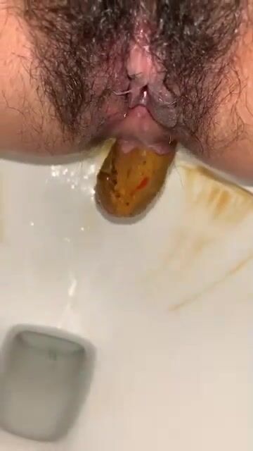 Horny brunette scat girl