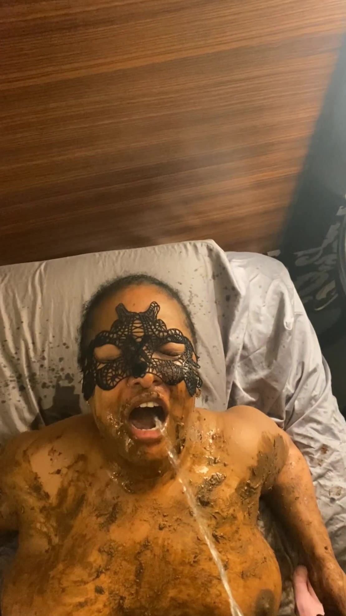A happy shit eater guzzling piss and wallowing in filth