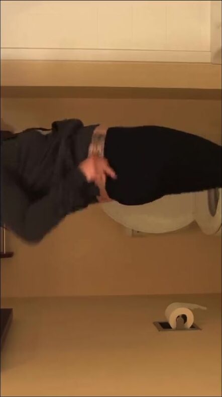 Hot blonde poops on toilet