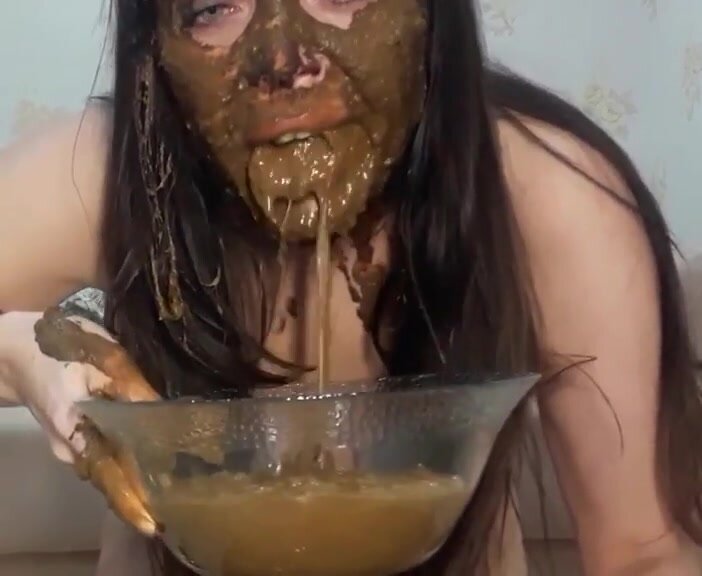 Horny brunette scat girl