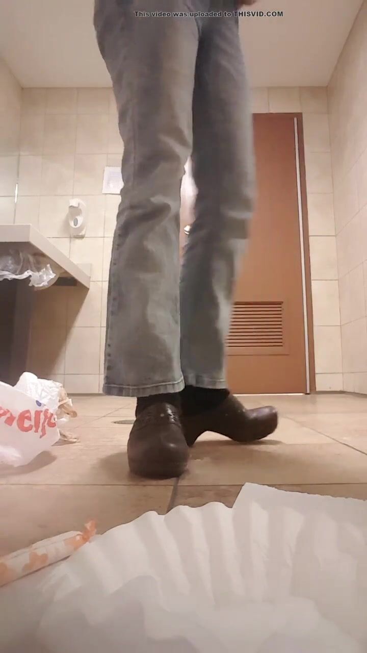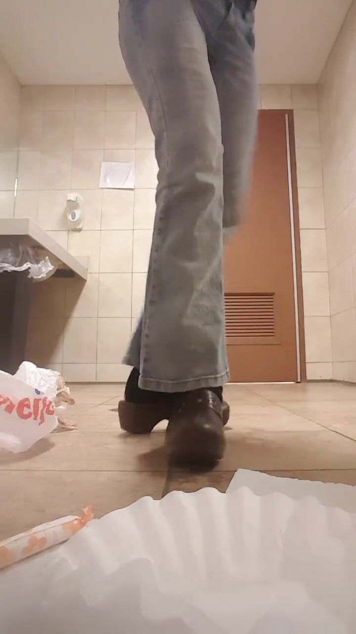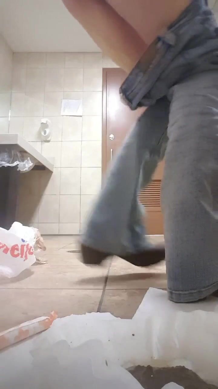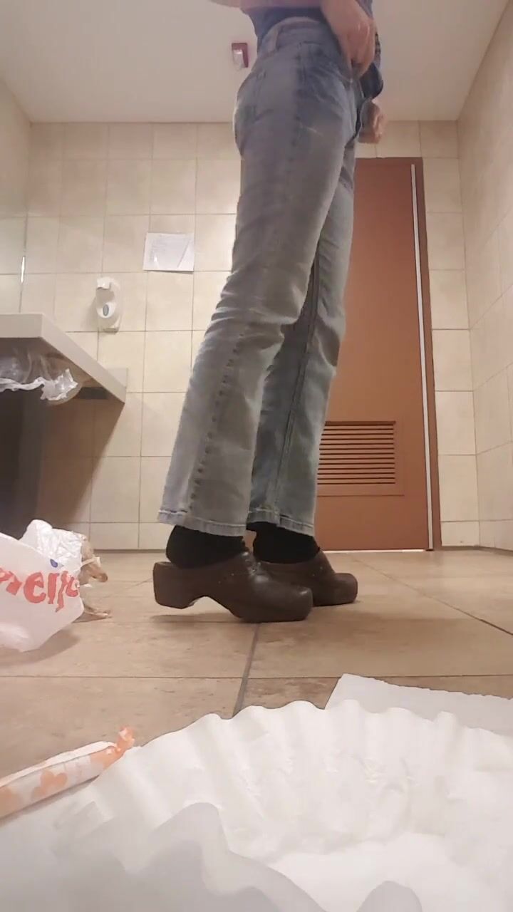 in a public toilet, a girl offers to put on a dirty con